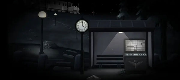 关键元素包括钟和火车路线图。首先找到丢失的按钮,然后按照场景从左到右依次解谜。