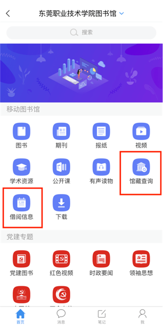 4、进入所在学校图书馆页面,点击“馆藏查询”或“借阅记录”进入借阅证号绑定界面。