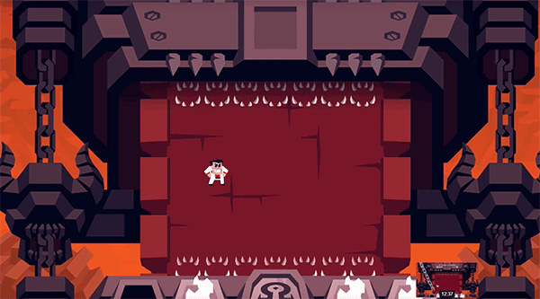 如果你不擅长躲避游戏,boss战可能会颇具挑战。玩家需要在躲避尖刺的同时避开boss的攻击,当屏幕停止移动时,攻击屏幕两侧的链条以继续前进。boss战共有四个阶段,每个阶段难度逐渐增加。