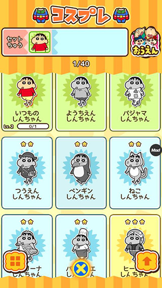 1、玩家可通过挑战关卡来获取金币,用以购买蜡笔小新全新时尚装扮和实用增强道具;2、手游中融入了大量原汁原味的动画元素,内容丰富多彩,忠实还原了经典画面;