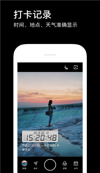 水印相机app是一款极受欢迎的照片拍摄软件,它提供了一种独特而富有创意的方式来美化你的照片。使用这款app,你可以轻松地为你拍摄的照片添加各种水印,不仅增添了艺术感和意境,还有效地起到了防止图片被盗用的作用。这款app的特色在于它丰富多样的水印模板和功能。无论你想表达的是哪种心情,或是想记录的是何种天气、地点,这款app都能满足你的需要。