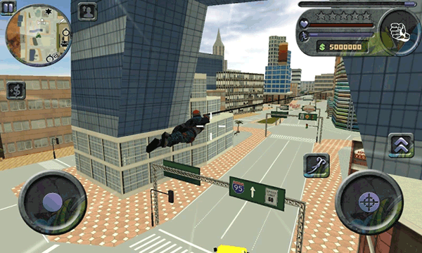 3、按这个按钮抛出绳索,穿越城市。