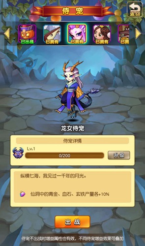 第二位小伙伴是陪伴葫芦娃闯关的侍宠,它们通常跟随在葫芦娃身后。在闯关过程中,如果仙宠负责攻击,那么侍宠则提供BUFF和增添乐趣。侍宠和仙宠一旦拥有,即使不上阵也能提供增益效果,且这些效果可以相互叠加。