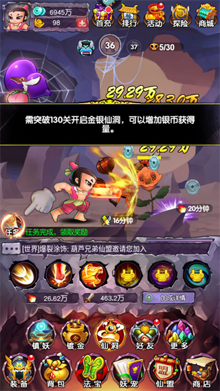 4、最后,打BOSS时别忘了频繁使用主动技能。这些技能能短时间内显著提升葫芦娃和仙宠的攻击力,让你轻松击败BOSS,继续你的冒险之旅。