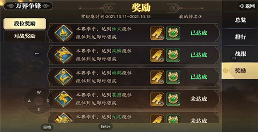 在万界争锋玩法中,每周一至周五,幻世大陆中每天将展开两场“常规赛”争霸,在活动开启时间内,点击“立即匹配”,便可以和来自本服以及其他区服的各路勇者进行PK,获得积分,用于提升排名和段位。
