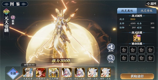 一、定位介绍:瑞兽降山河,麒麟震九霄自古以来,麒麟都是中国传统瑞兽。古人认为,麒麟出没处,必有祥瑞。据《礼记·礼运第九》记载:“麟、凤、龟、龙,谓之四灵”,可见自古以来,麒麟的地位与龙同等。元天帝麟则是以山海经中的经典瑞兽——麒麟为原型的SP级战灵。作为妖族代表,元天帝麟定位攻击型战灵,能够协助各位御灵师打出强有力的输出。可谓战力卓然,英姿不凡,踏雷霆,震九霄!