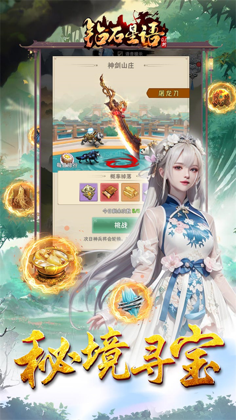 钻石星语手游最新版是一款放置挂机武侠冒险手游,游戏采用先进的unity3D引擎打造,玩家将穿梭与那美丽的武侠世界当中,游戏场景内的每一砖每一瓦都塑造的非常真实。游戏内为玩家准备了许多福利活动,每天只需要轻松游玩一下就可以领取大量的福利礼包,完成七日签到更有顶级神器可以免费领取。