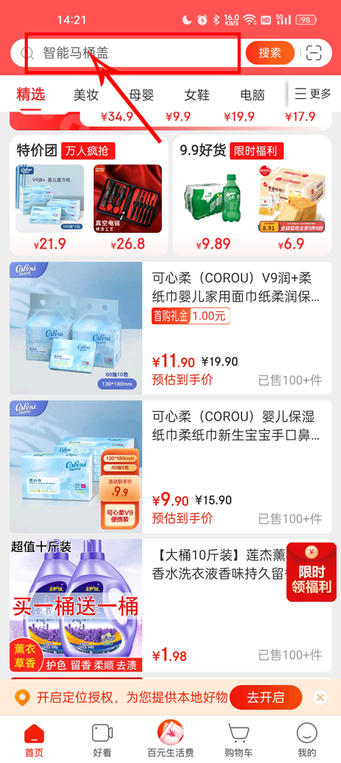 2、输入感兴趣的商品名称,搜索并浏览商品;
