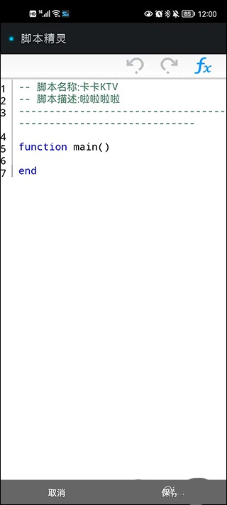 3、接着进入编写界面。请注意,“----“中间的内容是对脚本代码的注释,用于说明代码的功能。如下图所示,main函数是脚本的核心,它是脚本启动时首先调用的部分,其他代码都在其下执行。