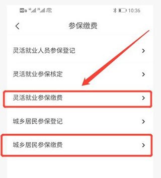 5、根据个人情况,选择相应的参保缴费类型,如【灵活就业人员参保缴费】或【城乡居民参保缴费】。