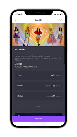 2、在Store页面,选择你想购买Bubble的SM团体或艺人。