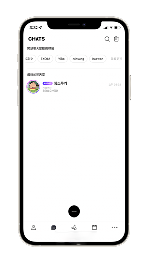 6、在Lysn App里的CHATS分页,将显示艺人的Bubble聊天室。