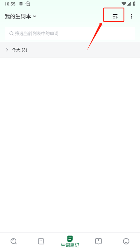 1、在德语助手app的生词笔记界面,点击右上角的功能键;