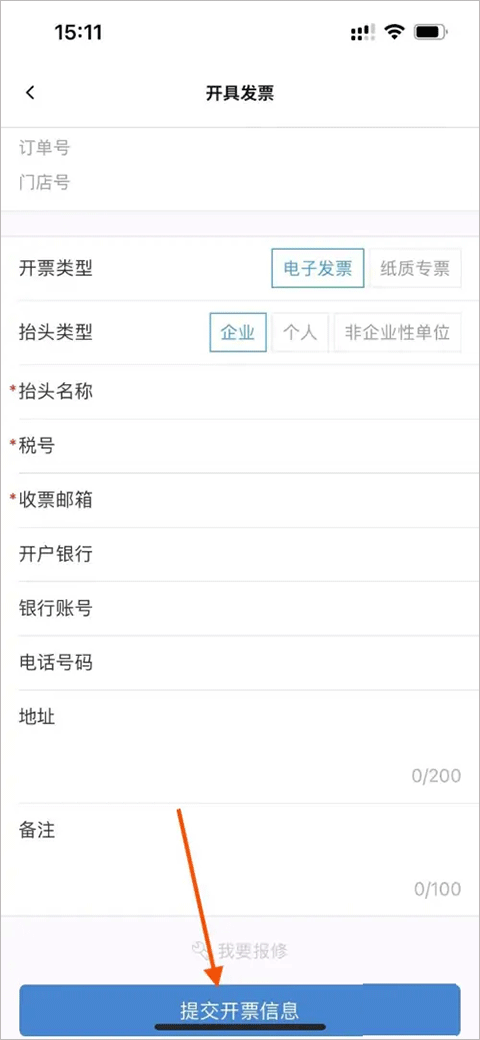 3、填写发票信息,如抬头名称、税号等,然后提交以完成开票流程。
