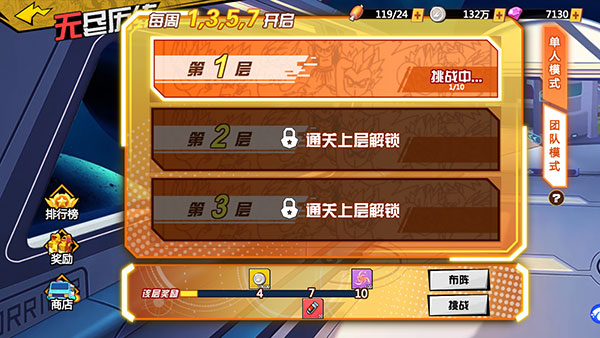 7、模式:副本分为单人模式(每周246开启)和团队模式(每周1357开启)。