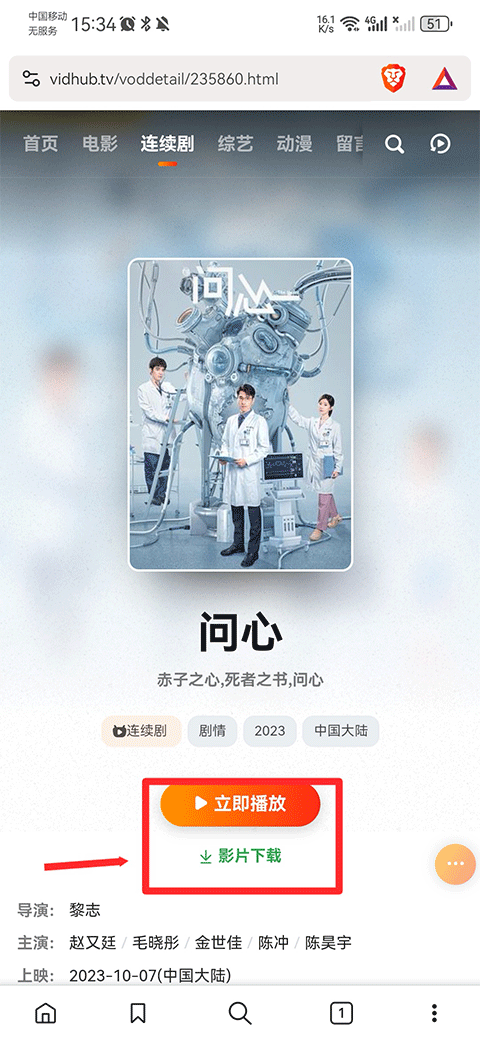 3、找到支持视频下载的网站。例如下图所示的网站,支持在线播放和下载视频。