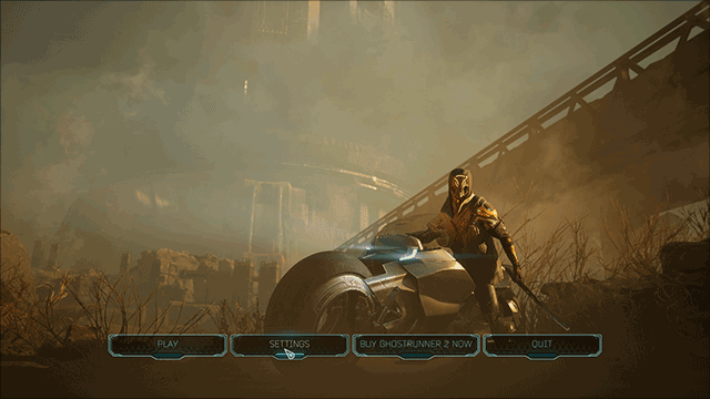 下载幽灵行者2中文版并解压缩完成后,启动游戏非常简单。首先双击压缩包中的“Ghostrunner2.exe”文件启动游戏。1、进入游戏,点击任意键从标题界面进入主界面。