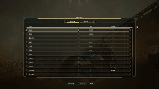 4、将游戏语言设置为中文后,进入“控制”选项下的“键位绑定”进行按键调整。