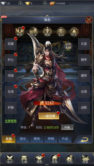 3、装备系统:利用核晶提升装备阶级,增强战力。