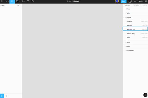 1、按键盘上的A键,创建画板,选择产品类型以获取相应UI大小网格。例如,为重新设计少数派首页,选择「MacBook Pro」。