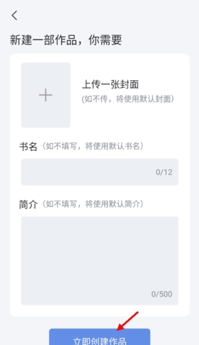 2、选好封面图后,填写小说内容,并点击创作按钮,即可开始发布。