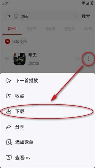 2、选择你要听的版本,并点击后面的三个点,选择“下载”;