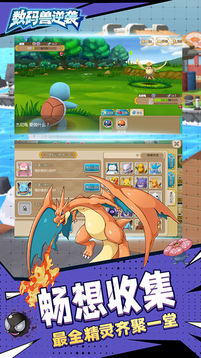 6、在手游中,有超过800只萌宠让你尽情收集!全世代精灵集聚一堂,等你驯化收集!可以将收集到的精灵进行培养驯化,组建成自己强大的队伍!
