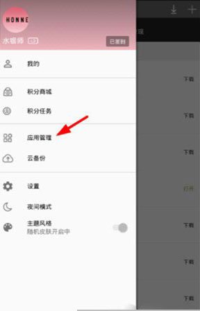 2、在个人列表中,选择“应用管理”功能,设置更新提醒。