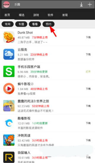 1、在app中预约游戏,首先选择首页上方的预约选项。