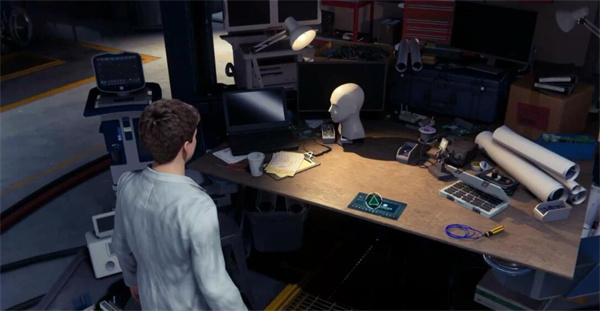 在实验室的另一角,使用摄谱仪测试义肢连接材料。后续可在此解决多个光谱谜题,获得研究代币。