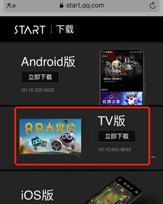 2. 在网站中查找并选择腾讯start云游戏TV版。