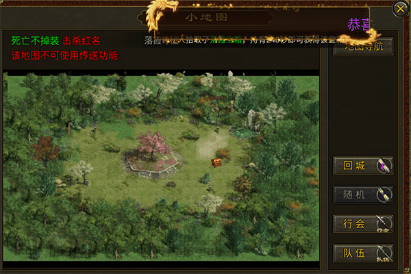 活动开始后,玩家将会派送至一个古香古色的后花园,每一个玩家的名称将被隐藏,以“神秘人”身份开启争夺。活动开启后,击败怪物将会被赋予“携带落霞宝箱”的状态,勇士在拾取宝箱后期间不能离开、下线,也不能同时拾取两个或以上的落霞宝箱。