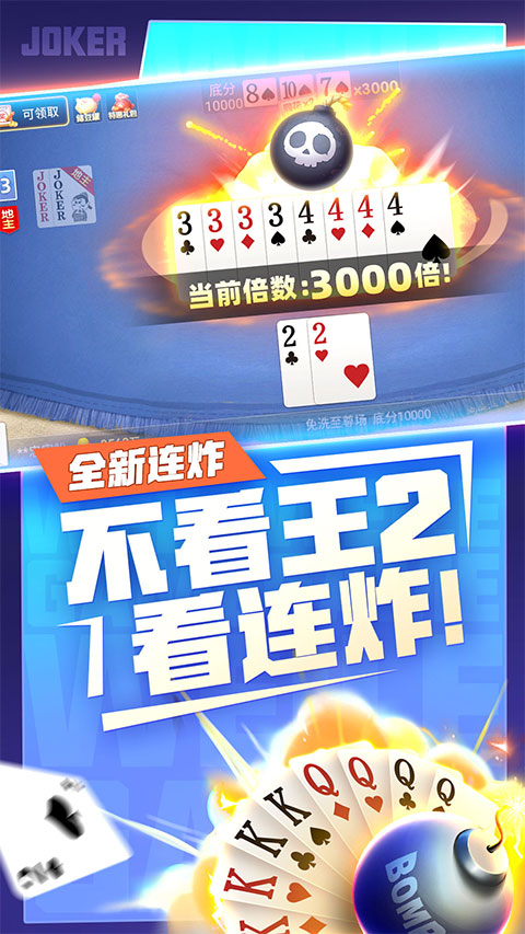 1、大胆出牌,利用炸弹翻倍时机抢分。2、勇敢出牌,不要让好牌浪费。
