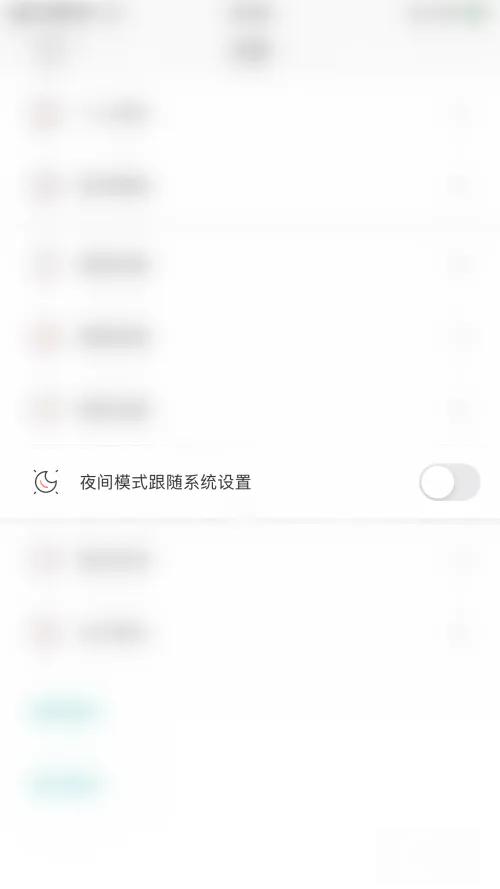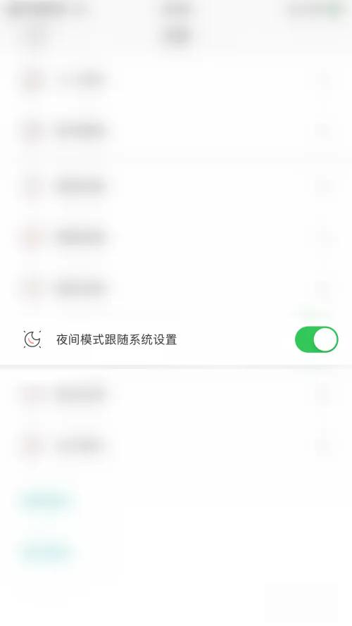“夜间模式跟随系统设置”后面的圆点变为绿色即表示开启夜间模式跟随系统设置