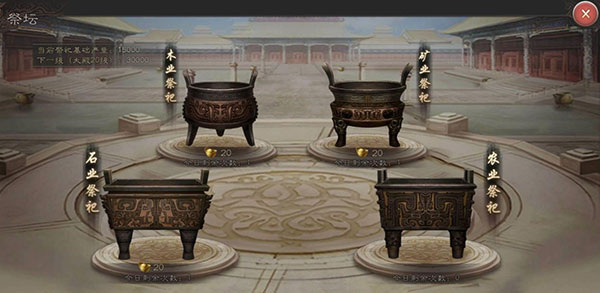 此外,在主城内的祭坛,主公们可以每日祭拜以获得额外的木材、石料、铁矿和粮草。这些资源的数量会随着主公等级的提升而增加。军团礼包中也包含了多种资源,主公们不要错过。