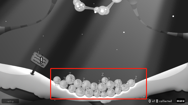 3、进入关卡后,将看到许多处于休眠状态的粘粘球,要想过关,需要先唤醒这些球。