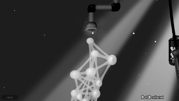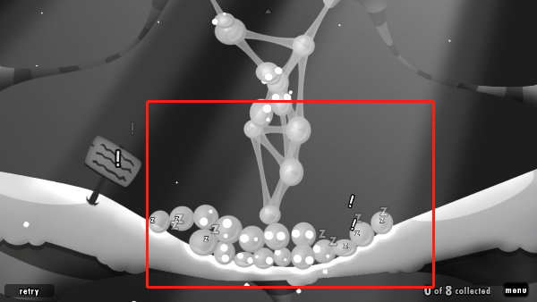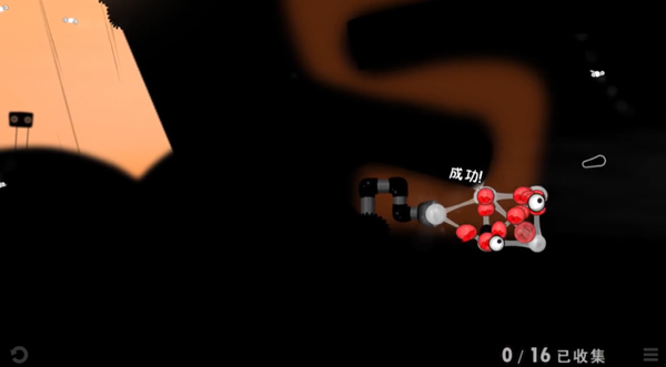4、使用少量清醒的粘粘球构建三角结构,接触到这些结构的休眠球将逐渐苏醒,完成这一步骤后,就能搭建足够的三角结构,接通管道。