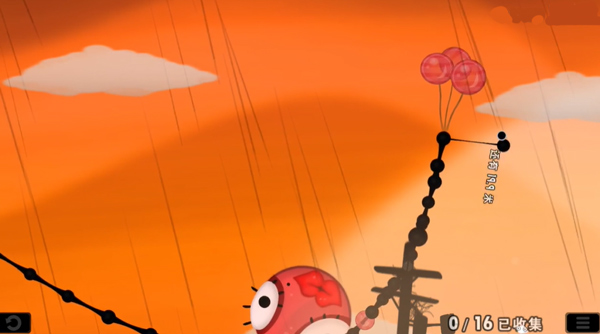 使用粘粘球将电线杆连接在一起,当电线杆即将掉下来时,通过气球的浮力将其抬升。红色的气球可以反复使用,按照这个步骤,您将成功到达目标。