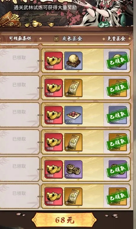 比如我购买68的基金及30元快速挑战特权一共98元,那么首冲礼包98元档同样激活,相当于花了98可以享受多重福利,这是我目前最推荐的充值方式