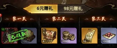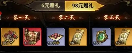 首冲礼包分为6元及98元,可以领三天,包含海量材料及红色侠客,橙色神器, 首冲礼包非常良心可以购买别的充值也同样记入首冲金额
