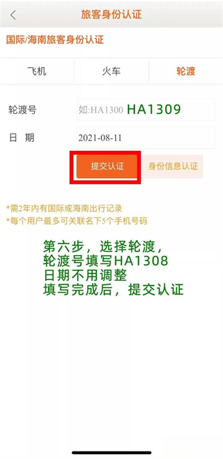 7、日上免税店app官方正版选择轮渡,填写轮渡信息,点击“提交认证”