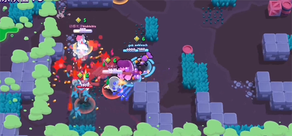 还可以在敌人接近时用普攻积攒能量,能量满时便可趁机杀出一条路。公牛的大招“蛮牛冲撞”距离很远,因此玩家在偷袭时必须准确判断时机和距离,以避免突击后被敌人包围。