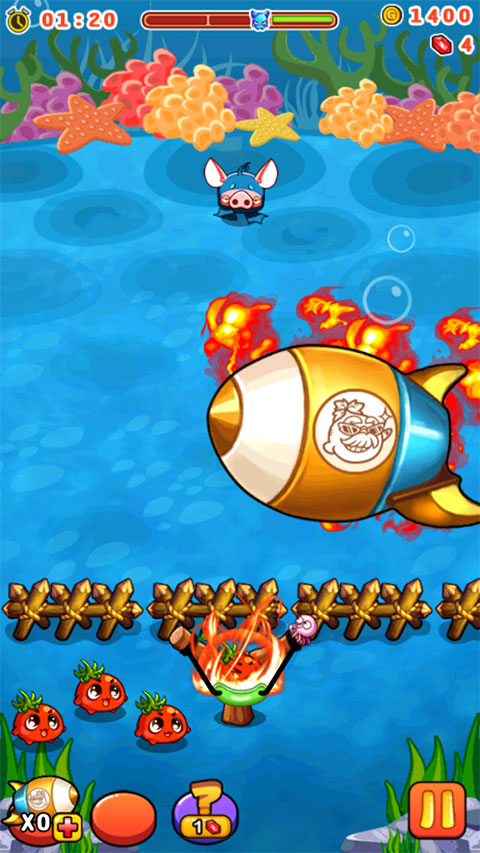 4、道具使用:燃烧的蔬菜2官方正版游戏左下角提供多种道具选择。玩家可根据实际情况选择适合的道具。此外,道具栏最右侧提供随机道具,玩家点击后可获得一个随机道具,但仅在本关卡有效。