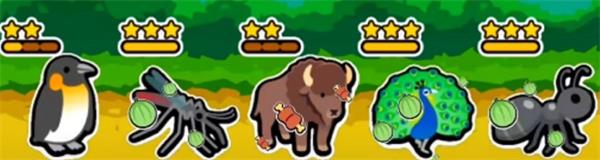1、火烈鸟和兔子为核心,极端情况下可加入骆驼和袋鼠,若难以合成三星动物,则中间加入野牛和长颈鹿,其余位置可根据情况补充蠕虫和海豹。