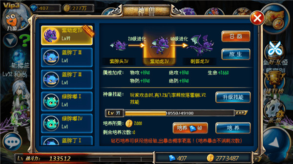 除了紫龙和黑龙,其他宠物相对一般。宠物技能升级方面,如果是增加生命的技能,则不建议升级,因为触发率低,回复量少。如果是攻击技能,则可以考虑适度升级。