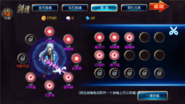 3、抽取剑魂时,如果目标是提升剑魂等级,建议避免使用一键抽取,以节省金币。