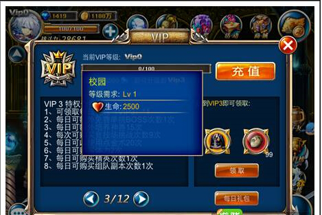 成为VIP3,奖励时装“校园”,只需充值50元即可解锁。