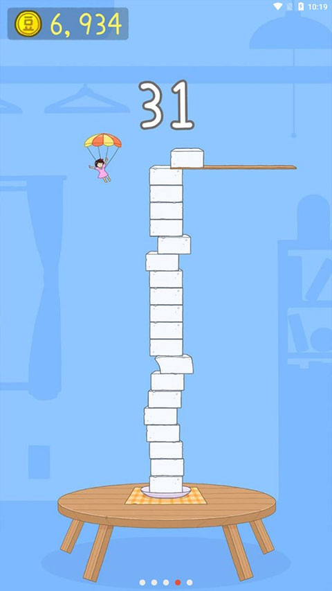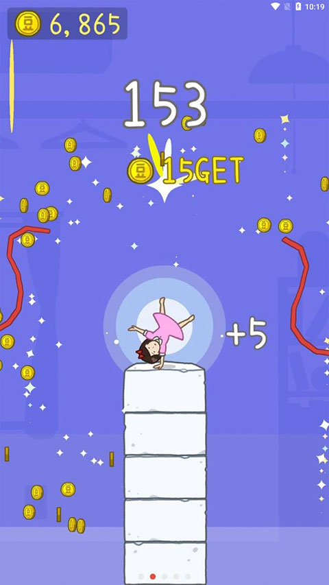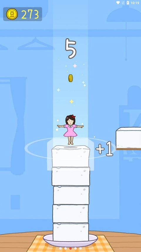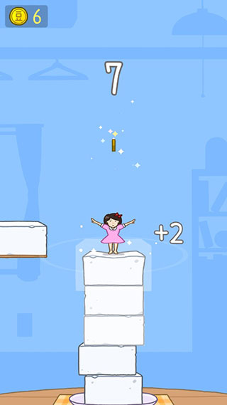 2、点击控制女孩,让她稳定落在不断出现的豆腐上。