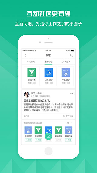 4、互动社区:提供互动式学习环境,丰富工作间隙的社交生活。