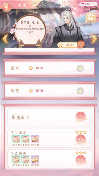 在密会玩法中玩家将于知己一起出行,触发不同的故事,出行中需要进行换装,达到1、2、3星时可分别获得星级奖励,章节内换装关卡全部三星通过还可获得章节宝箱。